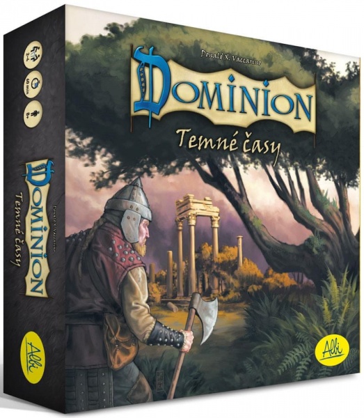 • Temné časy jsou 6. samostatně nehratelným rozšířením Dominionu. Přináší do hry 35 nových karet království a nové karty s negativním účinkem, které budete zpravidla dávat ostatním hráčům (ruiny), nové karty nahrazující počáteční Statky (útočiště) a karty, jež můžete získat pouze díky jiným kartám. Ústředním tématem tohoto rozšíření je zahazování karet na smetiště. Najdete zde karty, které něco dělají poté, co je zahodíte, stejně jako karty, které zahazování umožňují.