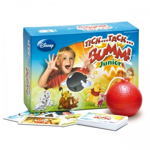 Rychlá slovní hra Tik Tak Bum Junior podporuje kreativitu, spontánnost a slovní zásobu. Zapni bombu, odkryj kartu, řekni slovo, které souvisí s obrázkem na kartě a předej rychle tikající bombu dalšímu hráči.